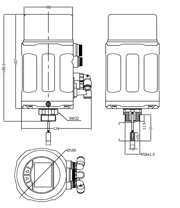 傾向于安裝在執(zhí)行器頂端,通過螺紋和執(zhí)行器連接
